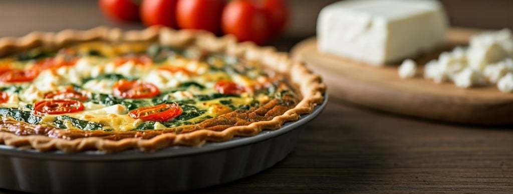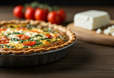 Spinach, feta cheese and tomato in a creamy egg custard, served by the slice..